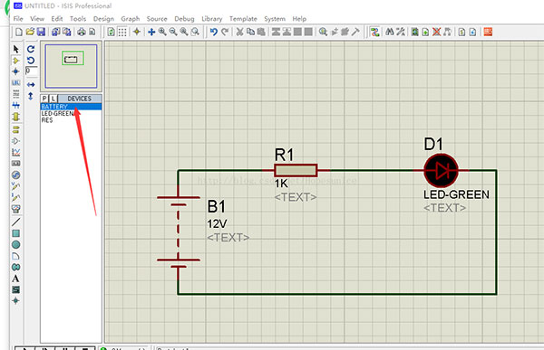 这时候不用退出搜索界面 继续搜索我们需要的器件即可 。比如 电阻RES 电池Battery 其实这些东西你在原理图中双击它 都可以改变他的大小 好 搜索完成之后 我们推出这个器件搜索界面 进入最初的那个开始界面 那么我们在器件栏里面点击一下器件 然后在右边的原理图中合适的位置单击左键放上就行了 注意鼠标的滚轮可以放大或者缩小原理图 这样一幅原理图就搭建好了