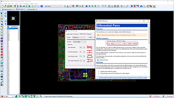 Proteus 8.10现在通过设计规则系统和专用布线模式支持差分对。高级设计规则允许用户指定布线对之间的间隙,并允许定义最大未配对长度和相位公差标准;