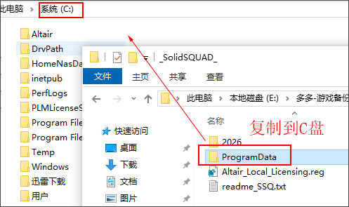 2、将_SolidSQUAD_激活文件解压出来,复制ProgramData文件夹到c盘替换【ProgramData属于隐藏文件夹】;