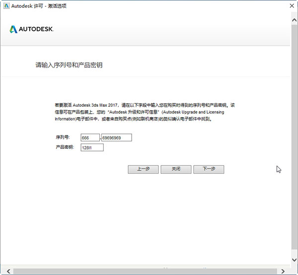 3、输入序列号和产品密钥;