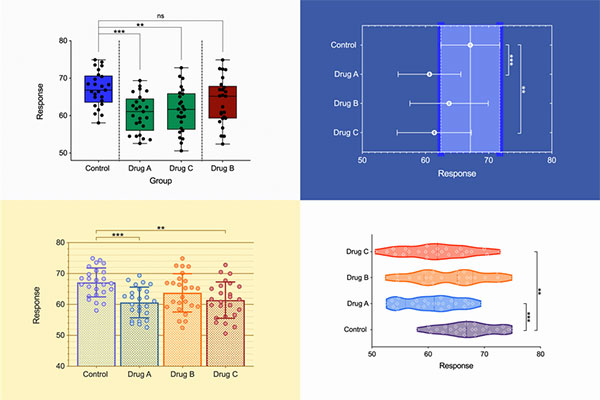 关注数据中的故事,而不是操纵软件。Prism可以轻松创建您想要的图表。选择图形的类型,并自定义任何部分—数据的排列方式、数据点的样式、标签、字体、颜色等等。定制选项是无穷无尽的。