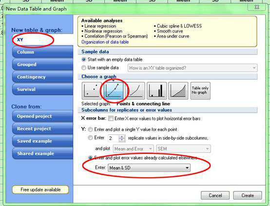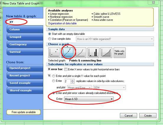 如果你的数据是用其他软件(excel,origin,etc..)已经处理过的,Graphpad prism也可以帮你完成剩下的作图工作,你只需告诉软件你输入的数据是已经计算好的就行了,比如你想用Table3的1组数据做折线图