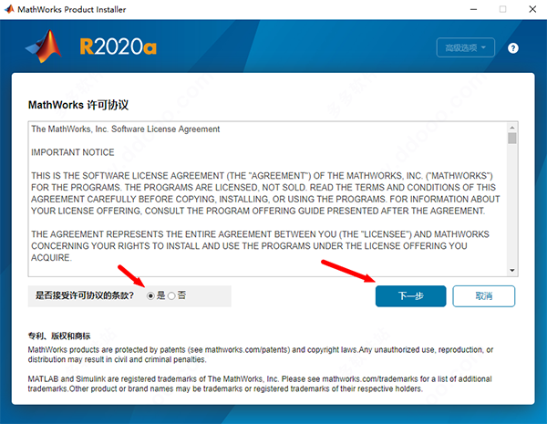 6、此时需要选择许可证文件,在Matlab R2020 Win64 Crack目录下,选择license_standalone.lic即可,下一步;