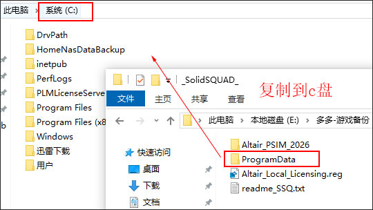2、将_SolidSQUAD_激活文件解压出来,复制ProgramData文件夹到c盘替换;