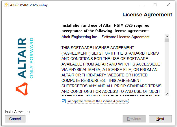 4、双击AltairPSIM2026_win64.exe先安装软件,接受软件协议;