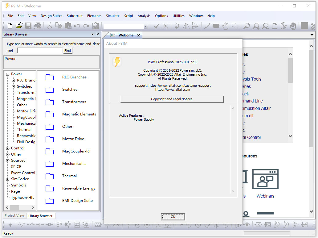 altair psim 2026是一款领先的电力电子和电机驱动仿真和设计软件,拥有直观、用户友好的界面和强大的仿真引擎,是满足用户仿真和设计需求的一体化解决方案。目前软件可以处理快速功率转换器损耗计算、电机驱动效率计算、传导 EMI 分析和仿真/数字控制,还为快速控制原型开发提供自动嵌入式代码生成。 此外,借助PSIM的各种设计套件,用户可以快速方便地设计电源、电磁干扰 (EMI) 滤波器和电机驱动系统,从而帮助用户在产品设计的每一个流程都提供更多的帮助和支持,从初始的概念,到验证,到原型制作控制到真实硬件的产生都能获得增强的能力。