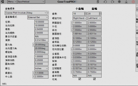 值得一提的是,geartrax2018拥有有一个相当大和可追踪的图形屏幕,软件内的大多数对话窗口已被替换为可扩展数据屏幕,即允许操纵所有值,而不仅仅是对话窗口中的值,组件选项卡的控件也被替换为一个下拉框,可在组件类型之间切换,从而节省屏幕空间。全新的定制界面使得标签文本可以轻松更改,以满足用户的各项需求,如语言与其他用户共享。
