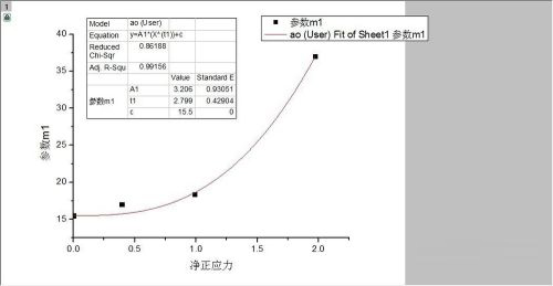8、最终生成图如下所示,表中会显示相关系数、拟合优度判定系数R方以及各参数的值。