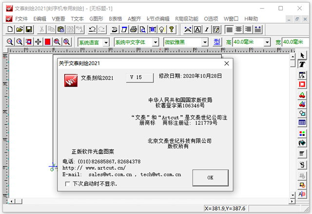 2、弹出文泰刻绘设计界面(这里以 2016 版为例来说明)。
