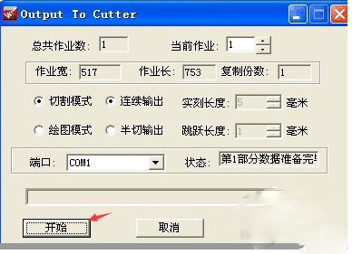 8、弹出输出到刻绘机窗口,点击下方“开始”,刻绘机就会开始进行刻绘了!