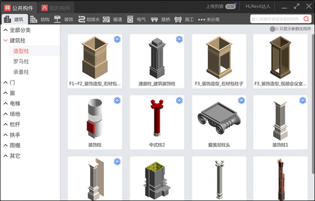 2、可以把常用的族文件收藏到“我的构件”,或者上传自己的内容。