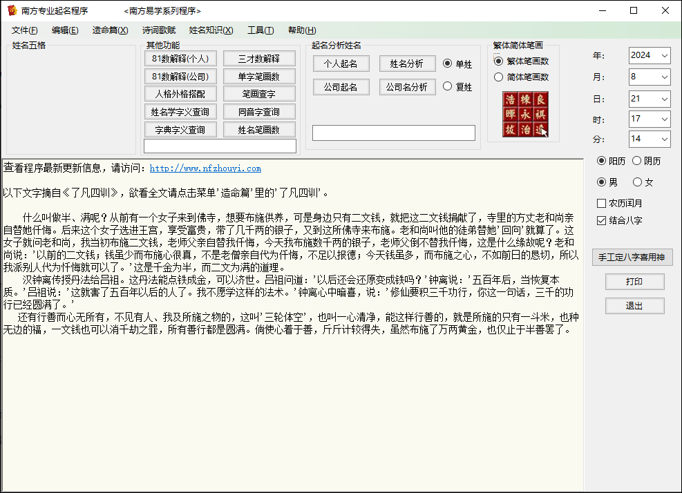 4、如果您是姓名学研究人员、爱好者、起名从业者,本程序最适宜您了;如果您想给自己、家人、公司、产品等起个好名,本程序也适合您。