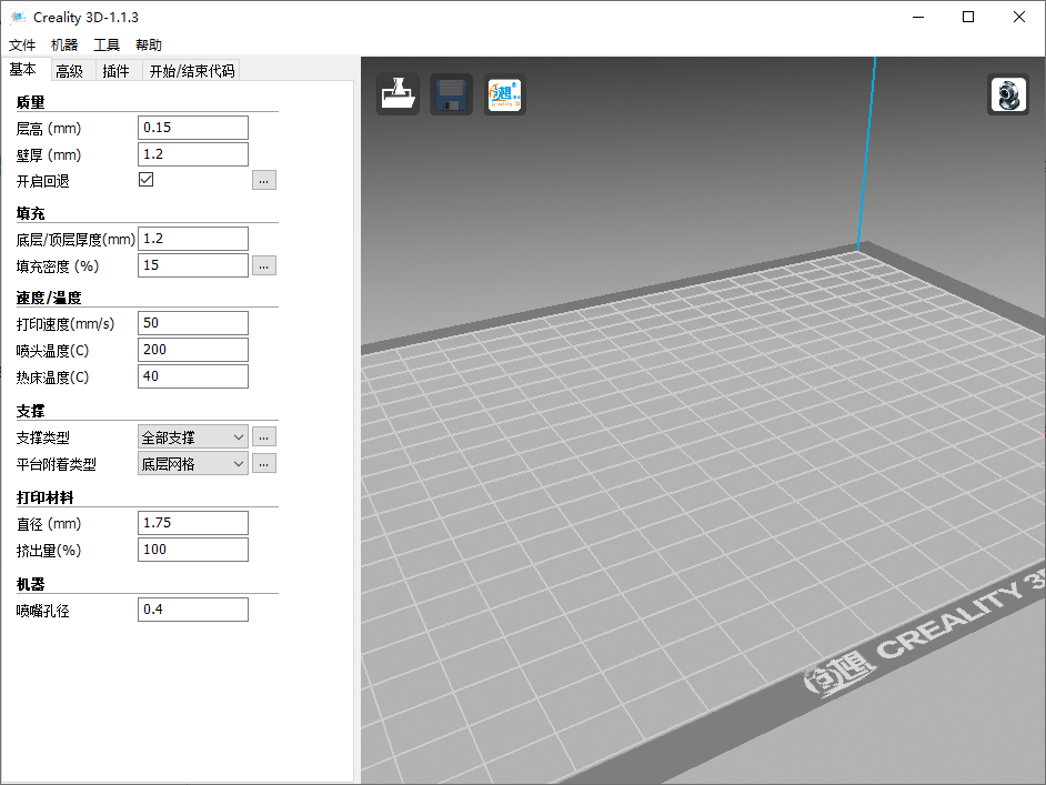 3、设置好之后,点击【Finish】即可开始使用Creality 3D(创想三维切片软件)了。