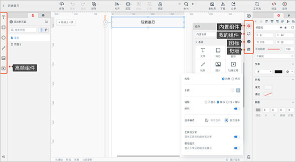 第五:墨刀创建页面内容非常的简单:从组件区拖出组件到页面设计区,对齐进行大小、颜色、外观等属性设置就可以了;