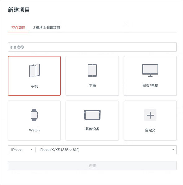 可以选择「使用模板项目」还是「创建空白项目」