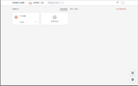 第一:注册/登录墨刀后,首先到达的是「个人空间」,可以看到一个我们预先创建好的项目组;