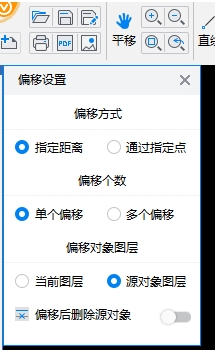 点击进行偏移设置,默认指定距离进行偏移,偏移个数为单个偏移,偏移对象图层为源对象图层,偏移后不删除源对象