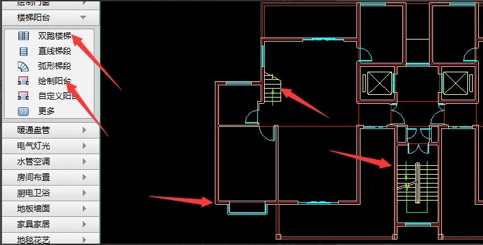 同样,点击图示位置的“楼梯阳台”,然后依据实际面积,进行楼梯阳台的绘制。PS:楼梯一般家里用不到,除非是别墅或者复式建筑。
