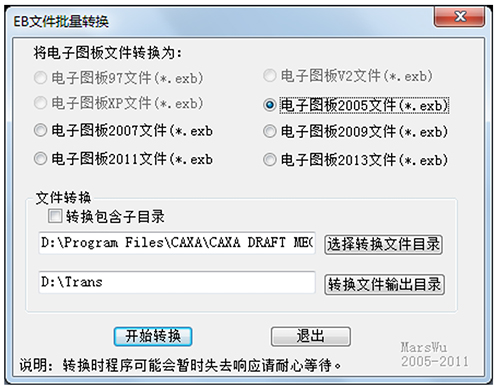 实现电子图版文件高版本格式文件向低版本格式的批量转换,方便使用CAXA不同版本用户之间进行图纸交流。