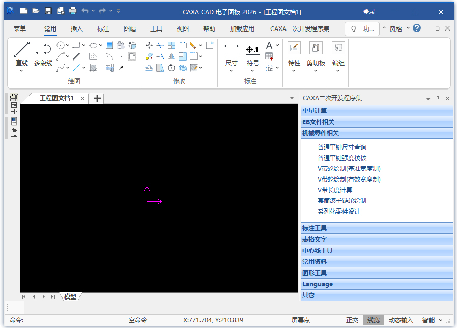 caxa二次开发程序集2026版是在CAXA电子图板软件基础上开发的一款cad辅助工具,能够支持CAXA电子图版2023/2024/2025/2026版本,拥有重量计算、EB文件相关、机械零件相关、标注工具、表格文字、中心线工具、常用资料、图形工具等栏目,能够实现批量填写标题栏,批量替换文字,批量检索明细表, 自动填写明细表重量,粗糙度技术要求自动生成,链轮绘制,皮带轮绘制,拆分图纸,批量中心线绘制,各式箭头生成,常用设计计算数据查询等功能,大幅度提高了日常绘图设计工作效率。