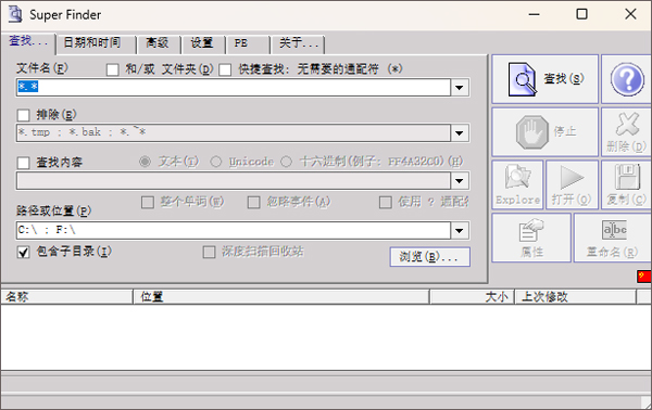 Super Finder中文版是一款非常不错的文件搜索软件,可以帮助用户在电脑上找到你需要的文件。这个软件有很多功能,比如直接输入名称、文件创建时间、文件大小和属性,让用户可以快速找到c盘和D盘上的文件。众所周知,c盘和d盘存放了很多文件,如果不知道文件存放在哪里,输入名称就可以找到。使用这个Super Finder就可以快速找到文件,非常不错。有需求的朋友可以免费下载体验哦!