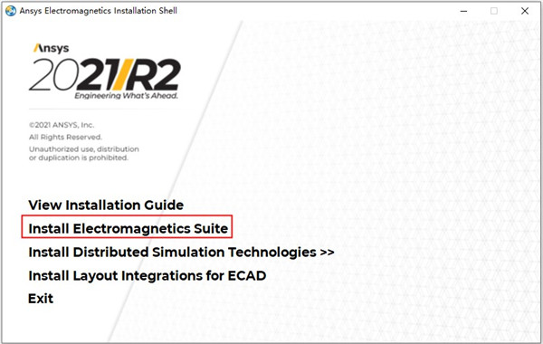 2、再次解压,得到Ansys.Electronics.2021R2.Win64.iso镜像文件,用虚拟光驱加载,win10系统可以直接右键以管理员身份运行,双击autorun.exe,选择Install Electronics Suite开始安装;