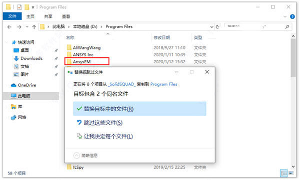 5、完成安装后,复制AnsysEM替换安装目录下的原文件夹