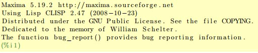 Maxima将会启动,你会看到版本信息和提示符: