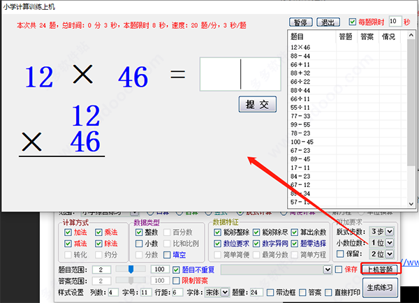 更新后版本还优化了上机答题功能,孩子可以练习正确率和速度,这对提升数学能力很有帮助。总的来说,这款工具非常适合用来给孩子出题,既省时又高效,特别是支持多种计算方式和自定义选项,真的很贴心!