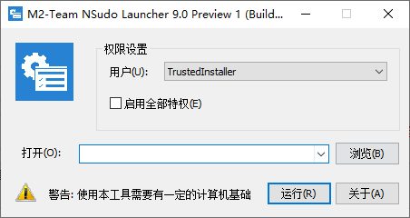 1、M2-Team NSudo提供管理员权限启动应用程序。