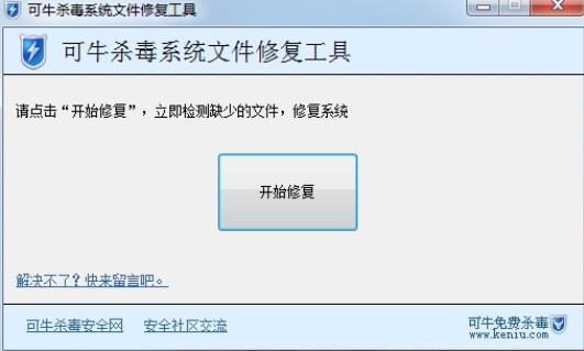 由于病毒木马的感染,我们在对电脑进行全盘杀毒后,可能会出现各种系统文件丢失的问题,这时你需要可牛杀毒系统文件修复工具,你也可以简称为可牛系统文件修复工具,能够帮助用户智能的找回各种缺失的系统文件,再通过云服务器下载,可以进行完美修复,确保系统正常运行。另外,可牛杀毒系统文件修复工具专为用户解决“输入法不见了、输入法图标不见了”等问题,而且如果系统文件丢失,您需要自行寻找选择适合系统的DLL系统文件进行使用,比较麻烦,这时候使用这款软件就好了!有需要的朋友欢迎免费下载体验。