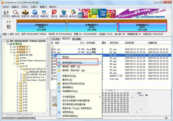 软件中显示了文件并不代表恢复过程结束了,扫描结果中的文件需要复制到其他的分区。在软件中选择想要恢复的文件,然后点击鼠标右键并选中"复制到指定文件夹"选项。