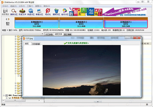 文件预览功能非常有用,它既可以帮助用户准确找到想要恢复的文件,又可以检查文件是否可以正常恢复。DiskGenius软件支持图片、视频、音频、文本、Office文档、DPF文件等预览。如果预览文件的时候提示文件损坏了,那么说明文件在丢失后遭到了破坏,最终恢复出去也会是损坏的;