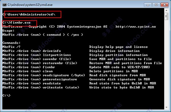 1、下载解压,得到fixmbr.exe文件,将其放在c盘根目录下;2、fixmbr命令帮助