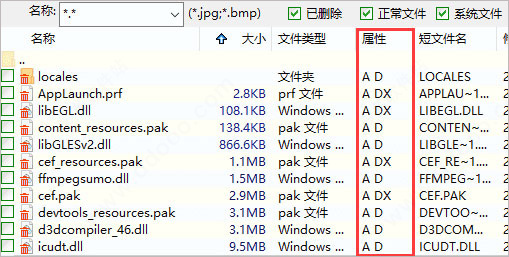 在恢复文件的状态下,文件列表中的“属性”栏将给已删除文件增加两个标记“D”和“X”。“D”表示这是一个已删除的文件。“X”表示这个文件的数据可能已被部分或全部覆盖,文件数据完全恢复的可能性较小。
