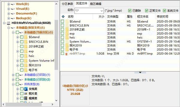 当所有要恢复的文件都复制出来后。可以通过“分区 - 重新加载当前分区”菜单项释放当前分区在内存中的暂存数据,并从磁盘加载当前分区,显示分区的当前状态。