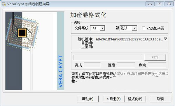 8、弹出加密卷格式化窗口,可以选择你想要的分区格式,fat/ntfs都可以,然后点“格式化”按钮,格式化需要的时间决取于加密卷的大小。如下图所示: