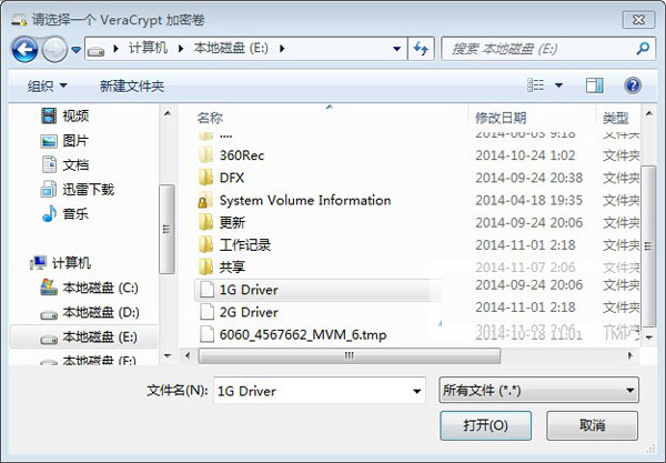 2、选择我们刚创建的加密卷文件1G Driver,如下图所示: