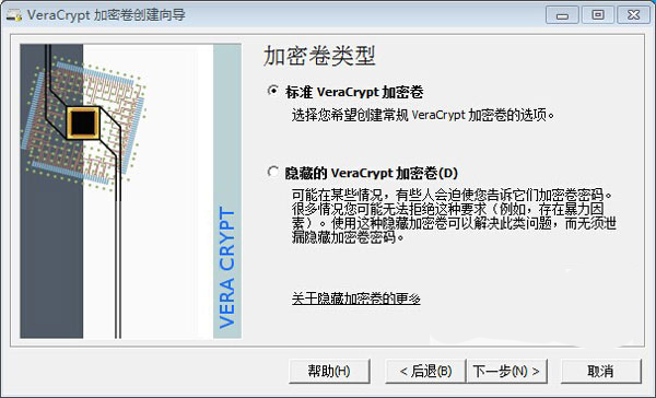 3、选择加密卷类型,这里我们选择标准VeraCrypt加密卷,然后点下一步,如下图所示: