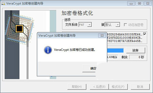 9、当出现以下窗口,表示你创建的VeraCrypt加密卷已经完成,并可以使用了。