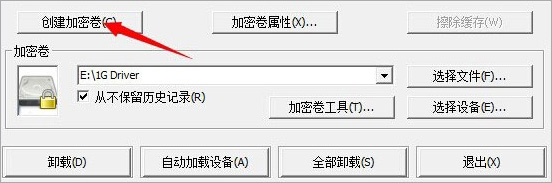 1、运行软件,在软件界面上点击“创建加密卷”按钮,如下图所示: