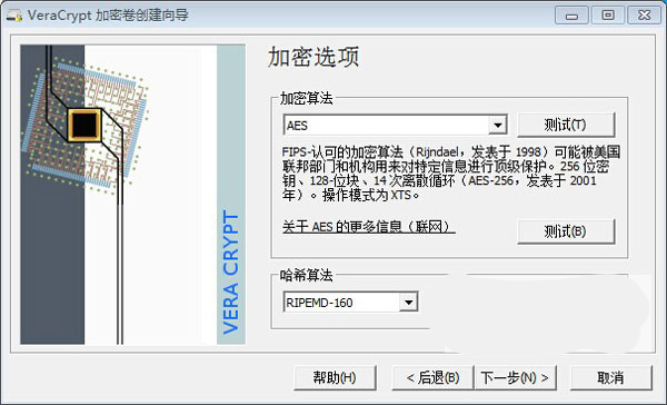 VeraCrypt 支持五种加密算法(AES XTS、Serpent、Twofish、Camellia 和 Kuznyechik),并且由于你可以组合它们,实际上有十五种加密算法的选择。还有四种哈希算法(SHA-512、Whirlpool、SHA-256 和 Streebog)。