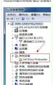 3、如果你之前有点击自动搜索更新驱动程序软件的话,你手机插上电脑是不会弹出让你选择驱动程序这个选项的,这时你就需要右键我的电脑,然后选择设备管理器,点击其他设备,里面有个mt65xx preloader的选项,