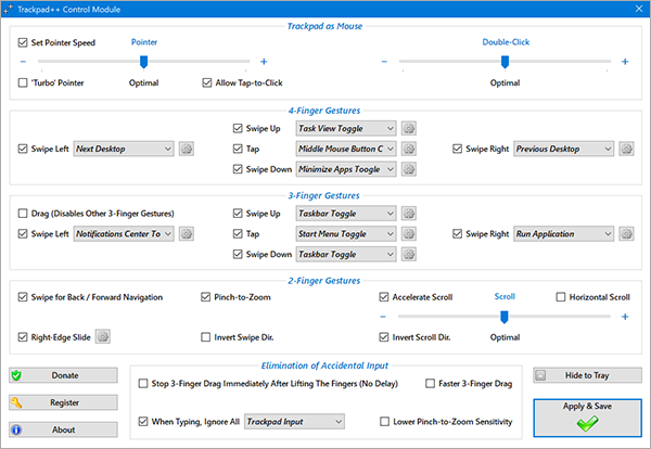 trackpad++软件是专门为Magic Trackpad产品提供的一个电脑增强驱动软件,只要在电脑中安装了就可以轻轻松松的帮助用户更好的有效的增加触摸板的灵活性,同时用户还需要注意的是该驱动软件不仅是第三方增强触摸板驱动,还是Apple Multi Touch和Force Touch触控板的唯一的备用Windows驱动程序,毕竟Trackpad产品本来就是为苹果提供的触控板。