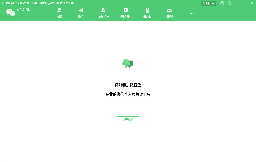 微客兔官方版是一款专业的微信客户,社群管理工具,软件支持多个微信号同时登陆管理,包括新人入群欢迎、关键词拉群、一键改群公告、批量入群邀请、加群好友增粉、群数据统计等,能够便捷的客服工作效率提升,可深度融合各企业客服工作全流程,让微信客户端变成和客户进行互动的桥梁。