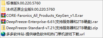 1、下载解压,得到冰点还原win10版标准版和企业版原程序,以及破解文件;