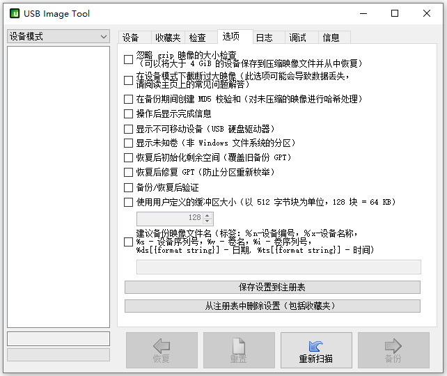 usb image tool使用IMG与IMA格式,它允许你创建、恢复镜像。