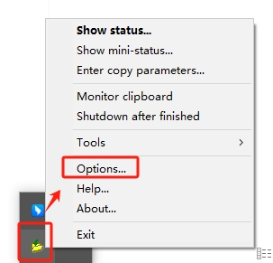 1、右键点击系统托盘中的图标=>“Options”。