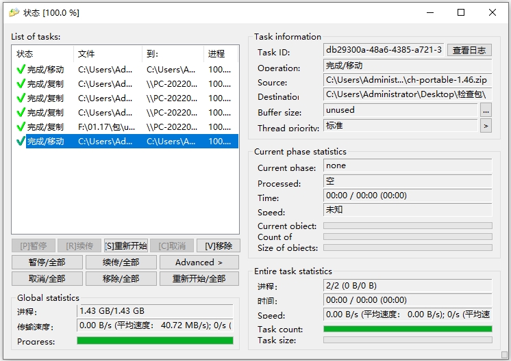 6、支持设置有关复制/移动操作的详细统计信息(当前文件、缓冲区大小、优先级、大小进度、计数和总体状态、当前和平均速度、已用时间、估计值、剩余时间等)