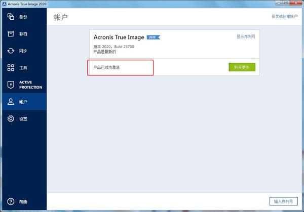 7、至此,软件安装成功,所有功能均已解锁,以上便是acronis true image 2020中文完整版全部内容。
